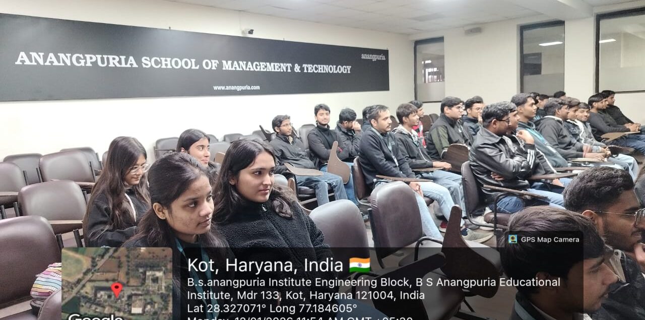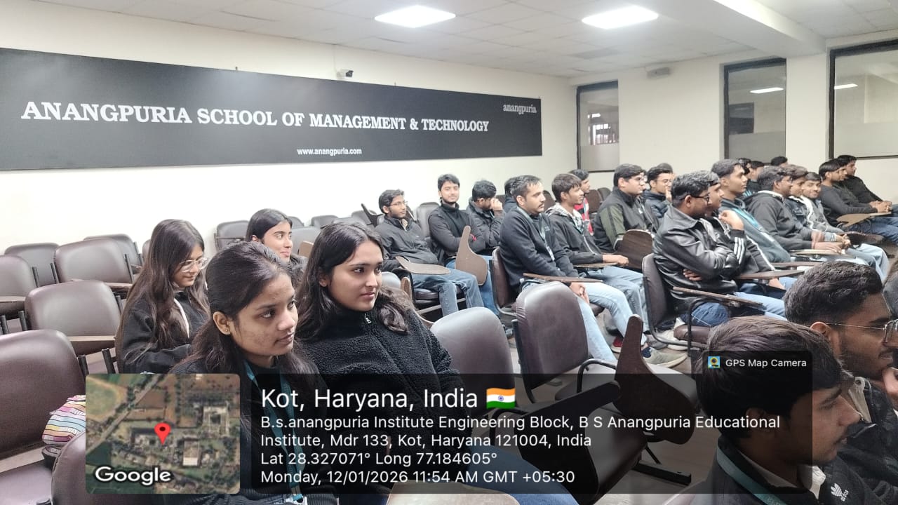 The primary objective of the session was to provide students with exposure to real-world applications of Artificial Intelligence, showcase breakthrough technologies, and discuss emerging industry trends and challenges. The lecture was delivered by Mr. Kanishk Kumar, Senior Developer, and Ms. Kulbhushan Mayer, Lead Developer at Thinknyx Technologies. Both speakers shared practical insights into data analysis, the role of Python in AI-driven solutions, and the skills required to thrive in the evolving technology landscape. The interactive nature of the lecture allowed students to clarify doubts and gain a clearer understanding of current industry practices.