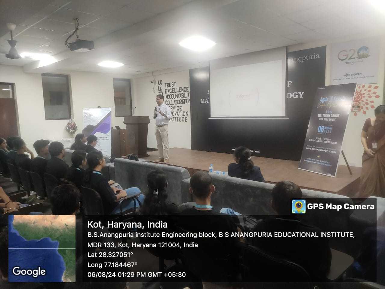 An expert talk on “Agile Implementation using Scrum” was organized on August 6, 2024, for the students of the CSE, IT, and BCA(DS) departments. The objective of this talk was to familiarize students with the Agile methodology, focusing on the Scrum framework, its practical applications, and the career opportunities it offers in the IT sector. The session was conducted by Mr. Trilok Rawat, an experienced Senior Test Analyst at Fidelity Information Services, who shared his expertise with the students, providing valuable insights into Agile practices.