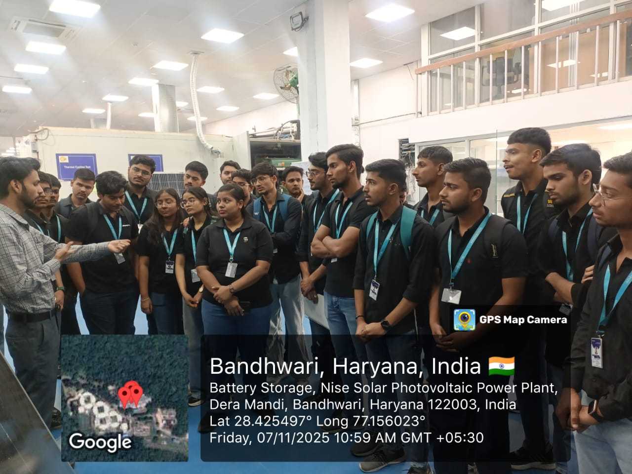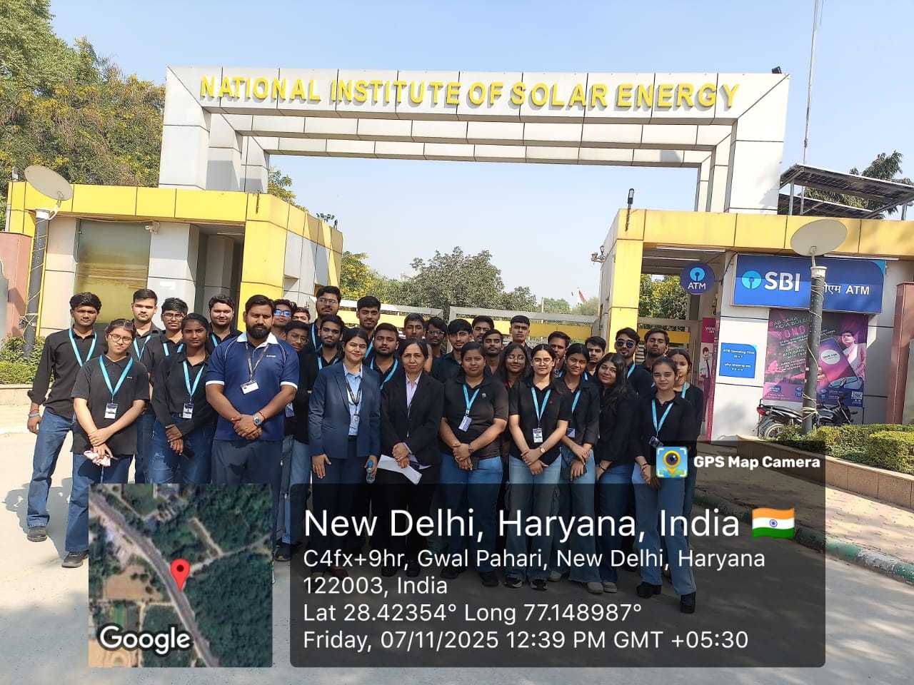 An industrial visit to the National Institute of Solar Energy (NISE) on 07 November 2025, Gurugram was organized for B.Tech CSE & IT 1st year students to provide practical exposure to renewable energy technologies, with a special focus on solar energy systems.